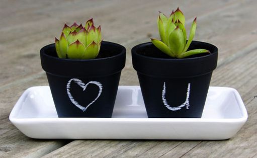 Para terminar mini vasos pintados com tinta de efeito lousa, uma ótima lembrança para oferecer. É só escrever algo querido com giz e, pronto, não tem como não se gostar.